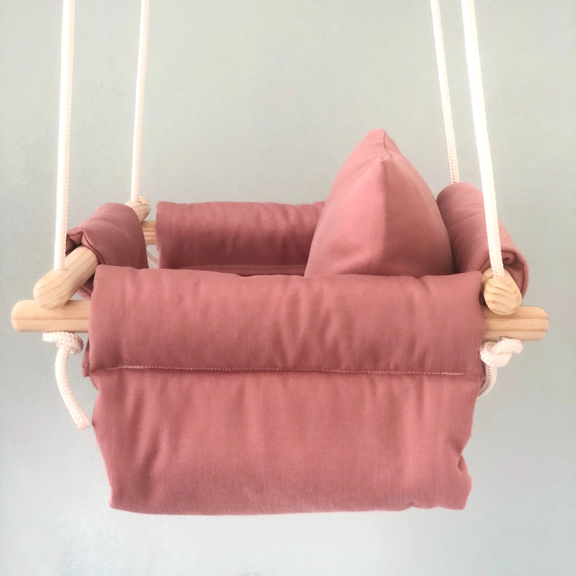 Our Swing Kits are handmade with love and care by mother and daughter team. Each kit comes ready to install with rope, hooks, screws and a sweet cushion for added support. Our swings are perfect for indoor and outdoor use and can hold up to 20kg’s. They are designed with a soft padding for extra comfort, luxury and safety while swinging and are machine washable.